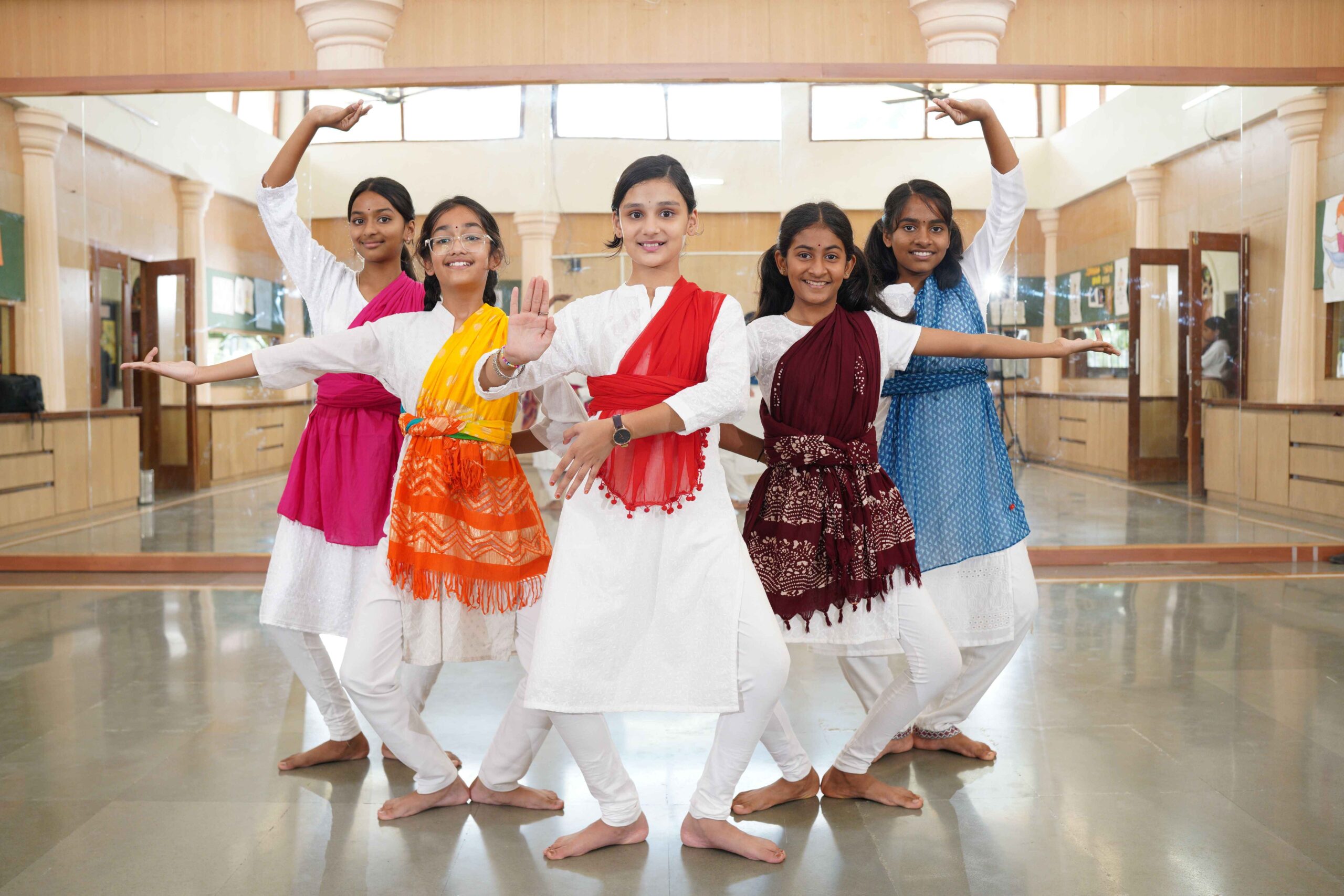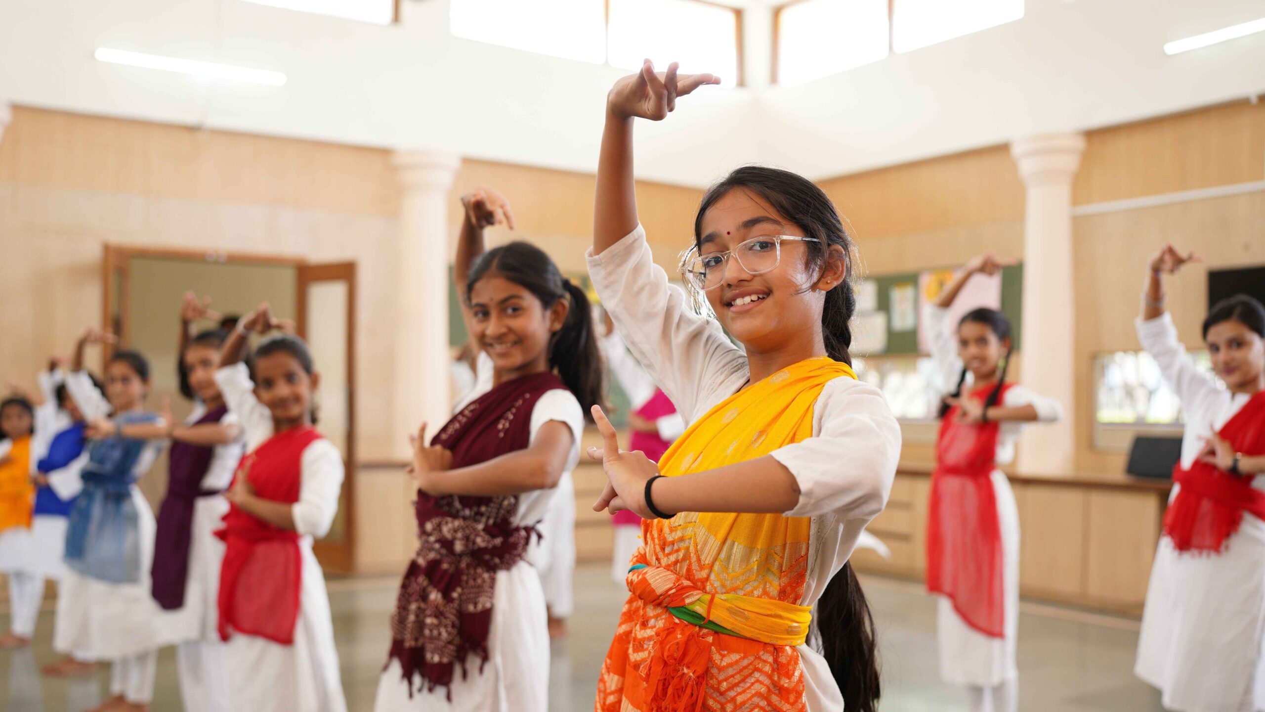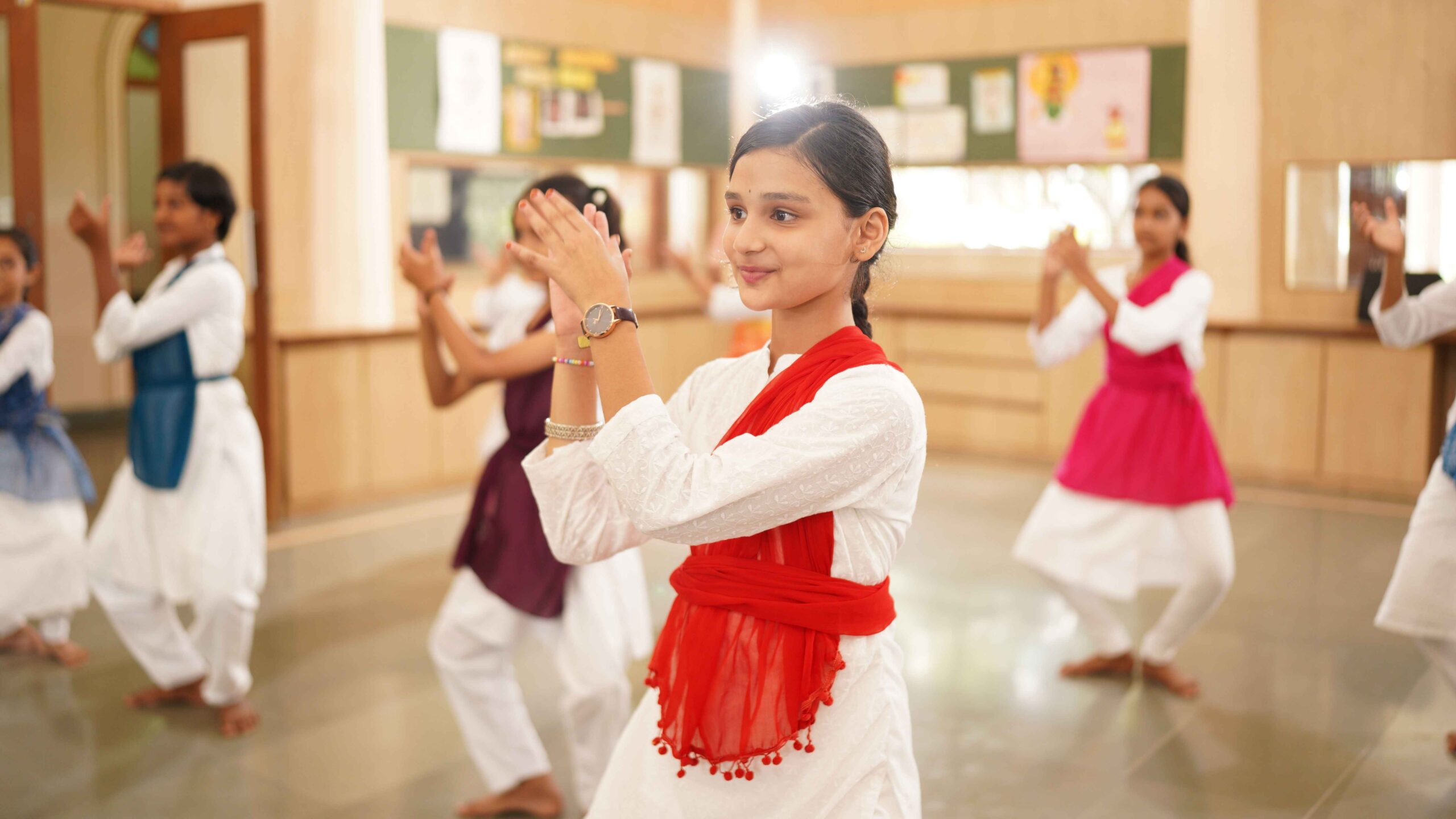 Dance classes expose students to classical, folk, and contemporary forms, helping them build rhythm, grace, and cultural appreciation. Special emphasis is placed on Indian Classical Dance forms such as Bharatanatyam and Kathak. Through these art forms, students learn not only movement but also the storytelling power of gestures (mudras) and expressions (abhinaya). Classical dance training develops discipline, physical fitness, concentration, and an appreciation for India’s spiritual and cultural traditions. Regular practice sessions help improve posture, flexibility, memory, and coordination, while stage performances instill confidence and stage presence. Students also participate in folk and contemporary dance, creating a balance between tradition and modernity.