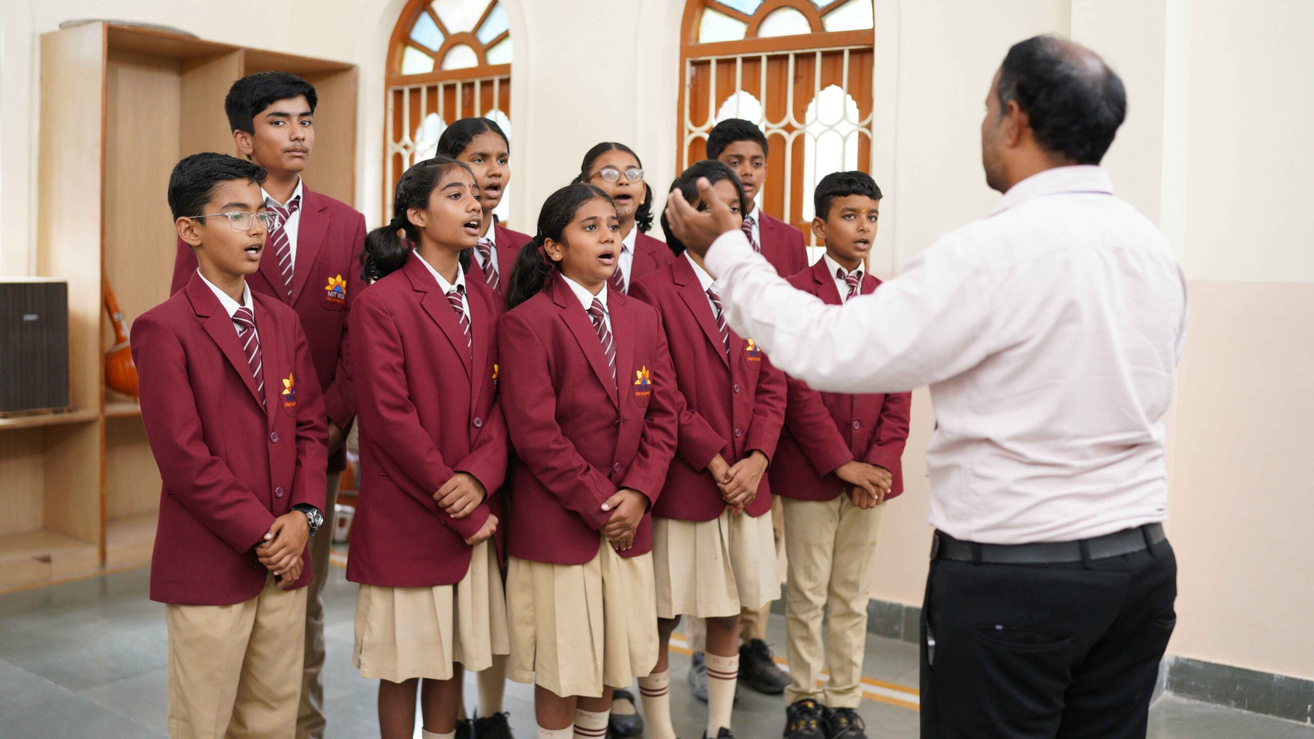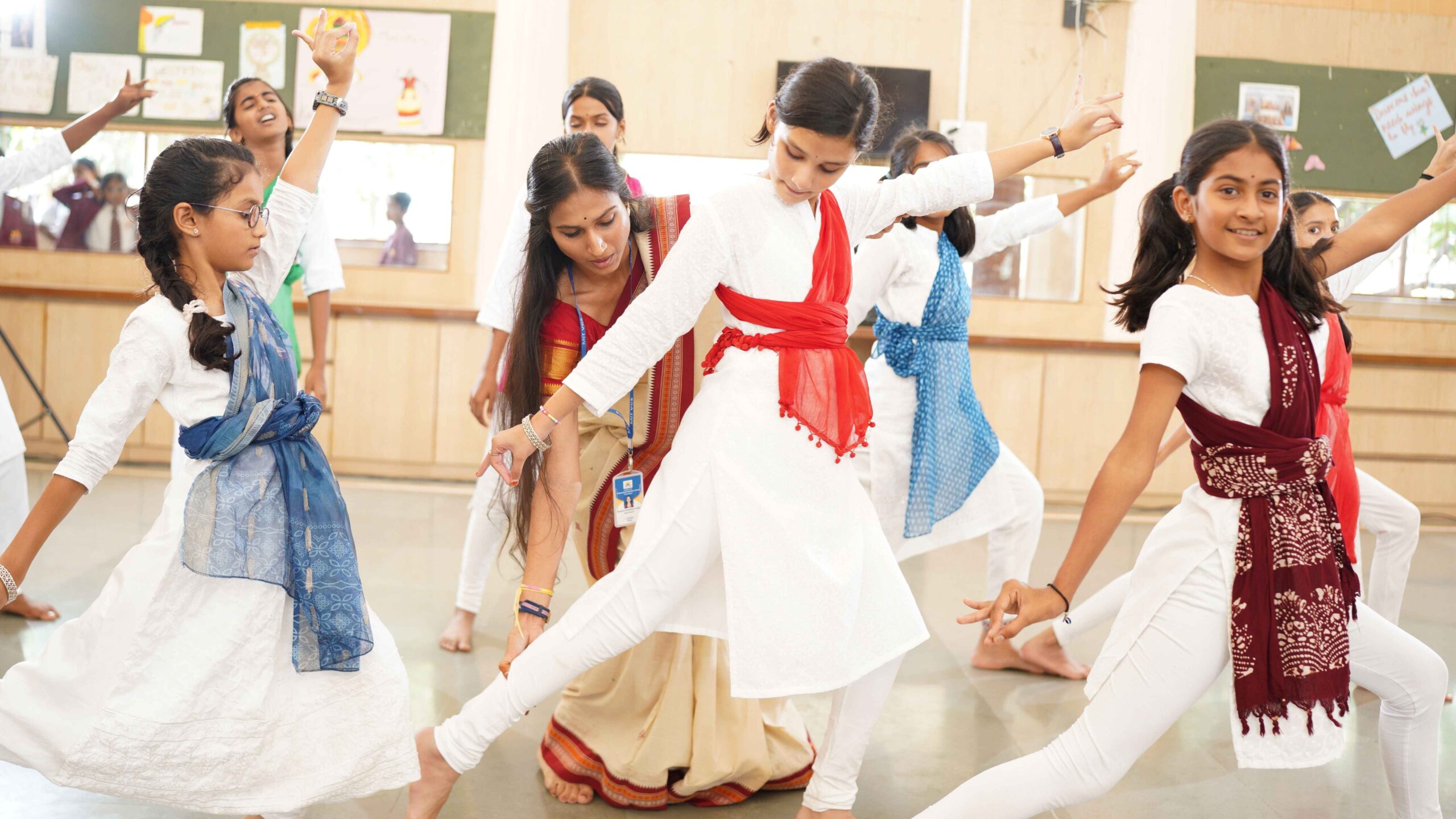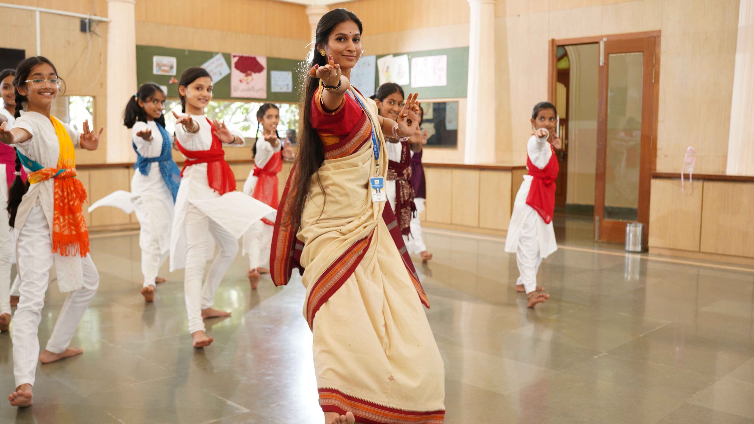 Dance classes expose students to classical, folk, and contemporary forms, helping them build rhythm, grace, and cultural appreciation. Special emphasis is placed on Indian Classical Dance forms such as Bharatanatyam and Kathak. Through these art forms, students learn not only movement but also the storytelling power of gestures (mudras) and expressions (abhinaya). Classical dance training develops discipline, physical fitness, concentration, and an appreciation for India’s spiritual and cultural traditions. Regular practice sessions help improve posture, flexibility, memory, and coordination, while stage performances instill confidence and stage presence. Students also participate in folk and contemporary dance, creating a balance between tradition and modernity.