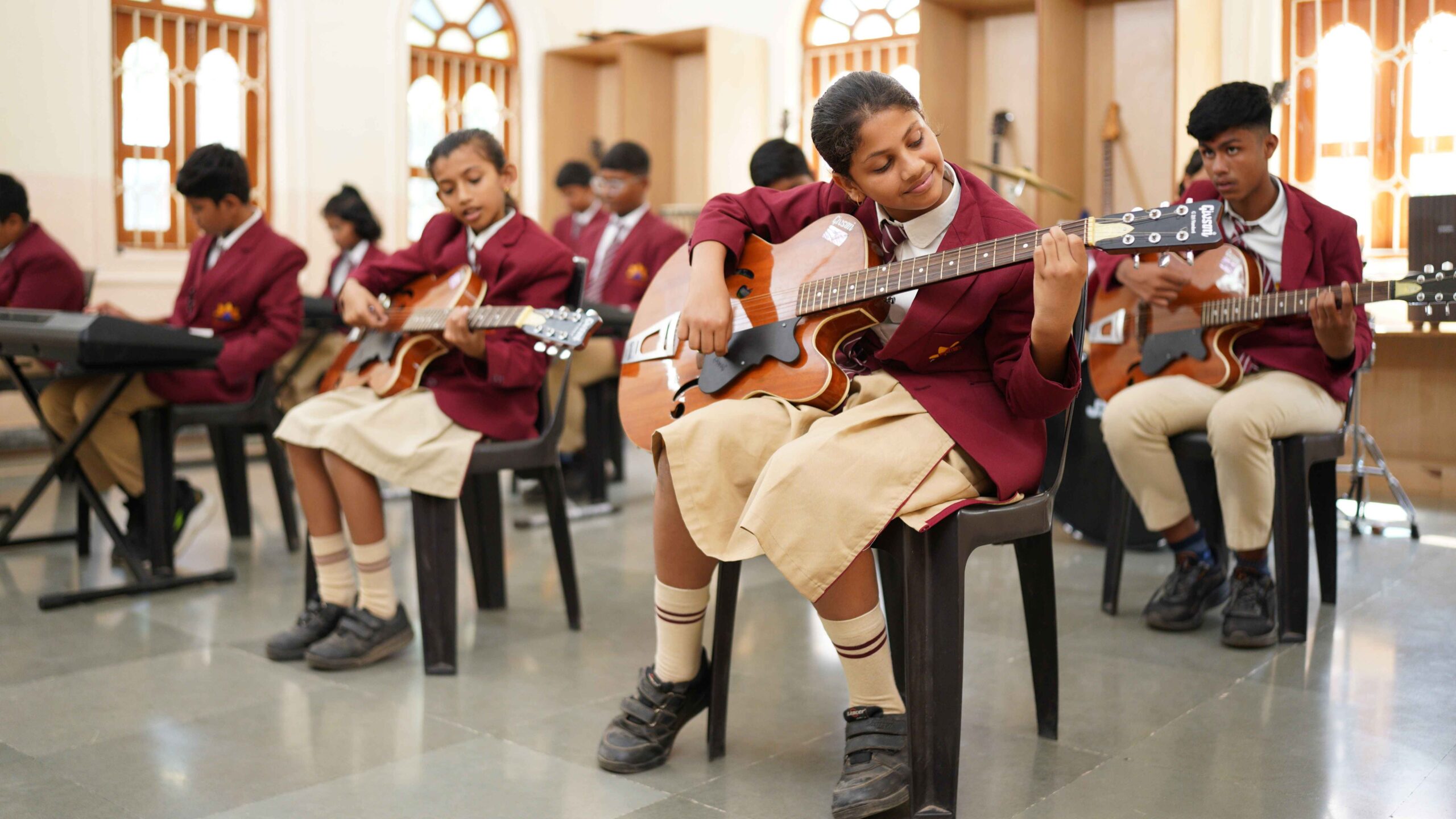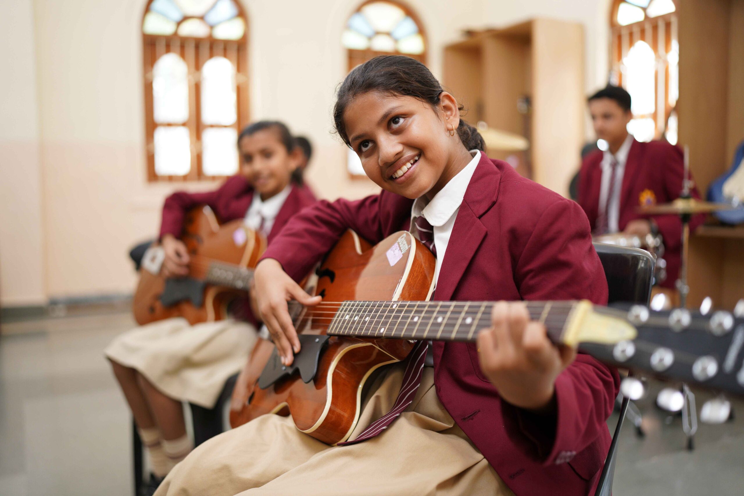 In music, students receive training in both vocal and instrumental forms, learning classical ragas, devotional songs, as well as contemporary pieces. Instruments like tabla, harmonium, guitar, and keyboard are taught, giving students a broad exposure to sound and rhythm.